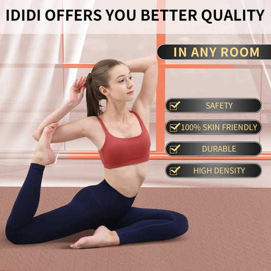 8Mm Large Yoga Mat (6'X 4') with Soft Fabric - Extra Long and Wide 72 X 48 X 0.32 Inches, Non-Slip Surface, Eco-Friendly, Lightweight, Thick Wide Yoga Mat for Home Workouts.(Brown+Apricot)