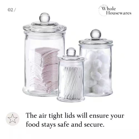 3Set of Bathroom Premium Glass Storage Container Apothecary Jars with Decorative Crystal for Kitchen or Bathroom