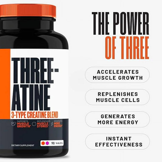 Creatine Monohydrate Pills, Premium 3 Type 5G Creatine Pills, Pre/Postworkout & Keto Energy Builder, Easy to Take Three-Atine for Optimum Performance Men Women, 90 Tablets