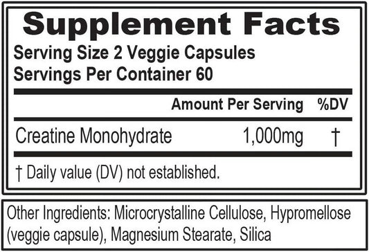 Creatine Monohydrate Pills 120Ct - EVL Nutrition Muscle Builder & Recovery Supplement - Creatine Capsules 1000Mg