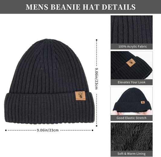 Winter Beanie Hats for Men Long Neck Scarf and Touchscreen Gloves Set with Fleece Lined Skull Caps Gifts for Men